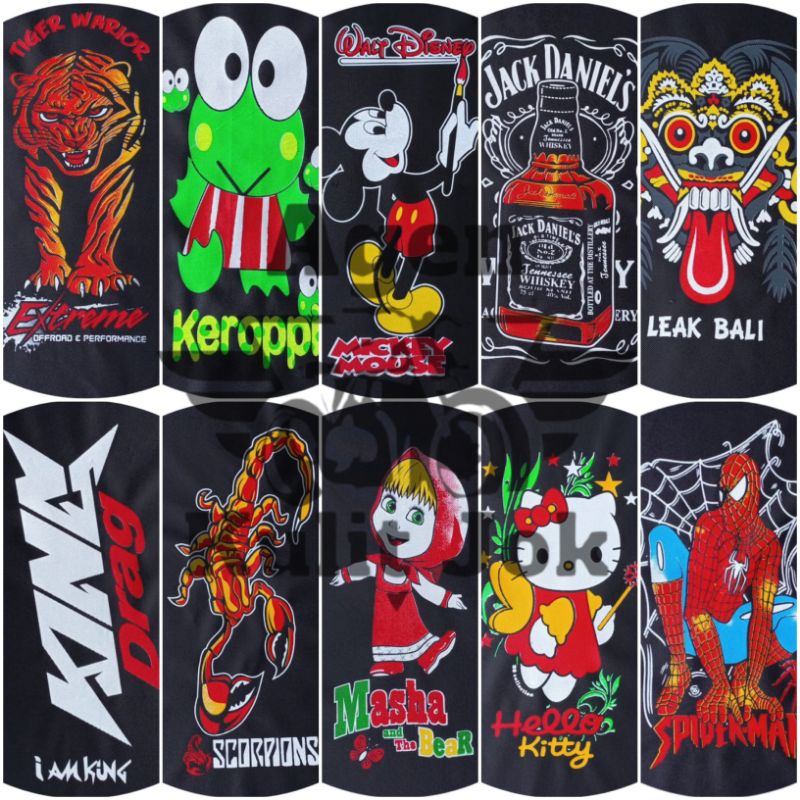 Man, Hello kitty, Keroppy, Doraemon, Masha, Botol, Scorpions, Sepiderman, Drag king, Leak bali, Mickey mouse, Anak punk, Triball, The doctor 46, Marques 93, Naga, Monster energi, Bride, Kawahara, Panda, Jokers, Blk, Sepatu, Exsotis, Gambar RANDOM, Bonek, Tempo dulu, Chelsea, Arsenal, Manchester United, Liverpool, Barcelona, Juventus, Independent, Spartan, Putih man, Gambar donald, Gambar monyet, Dragon, Minions, GunsNroses, Spongebob, Sinchan, Upinipin, Iwan Fals, Shaunsheep, Gambar sonic, Tom&Jerry, Bob marley, Striping