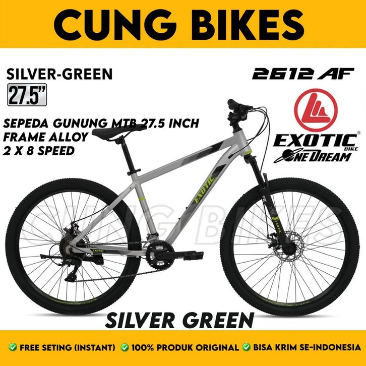 Sepeda gunung Exotic 2612 AF AH 27,5 Inch Frame Alloy 2x8 Speed Cakram Disk Sepeda Gunung Dewasa