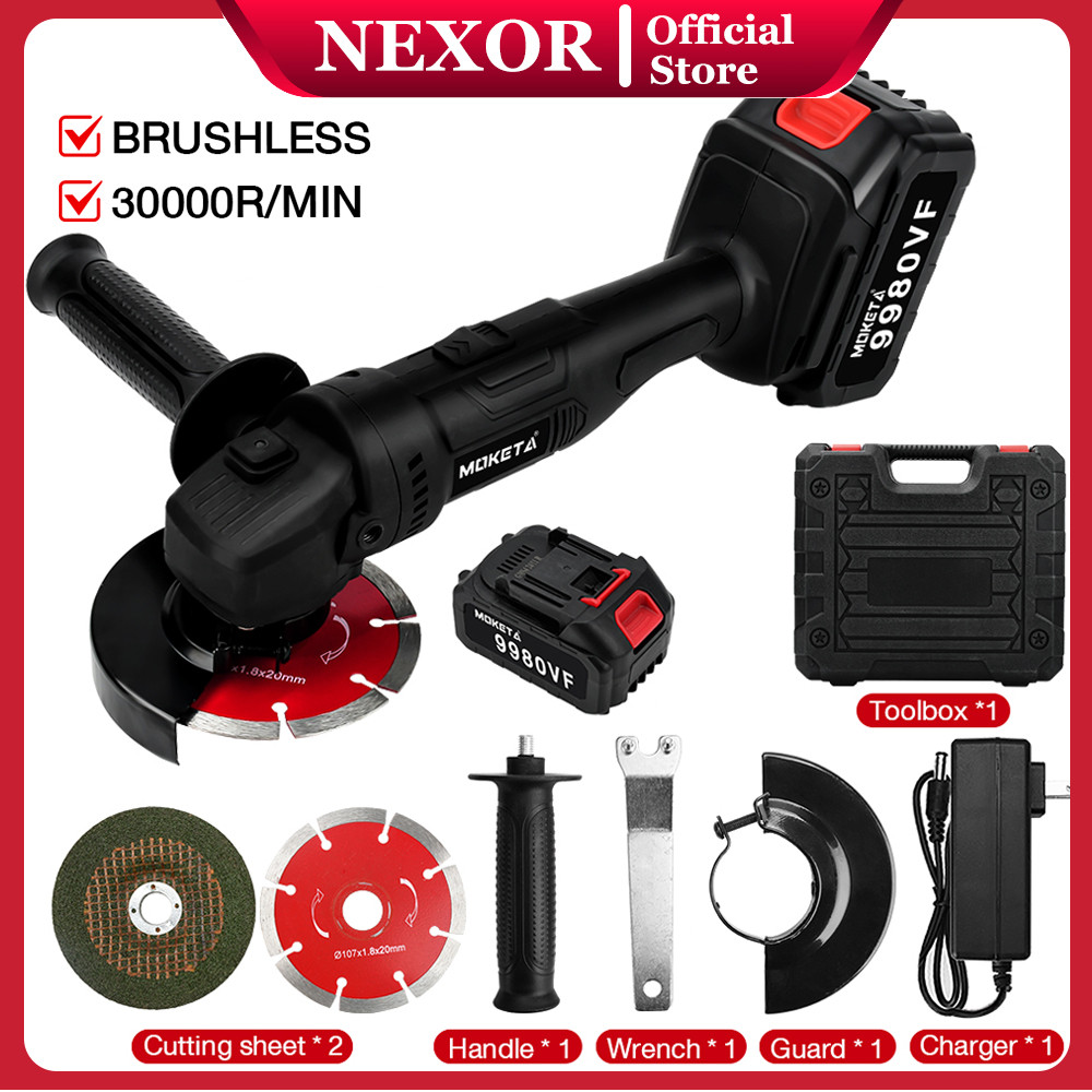 NEXOR 4Inch Brushless Mesin Gerinda Baterai Tangan 2000W Cordless Angle Grinder