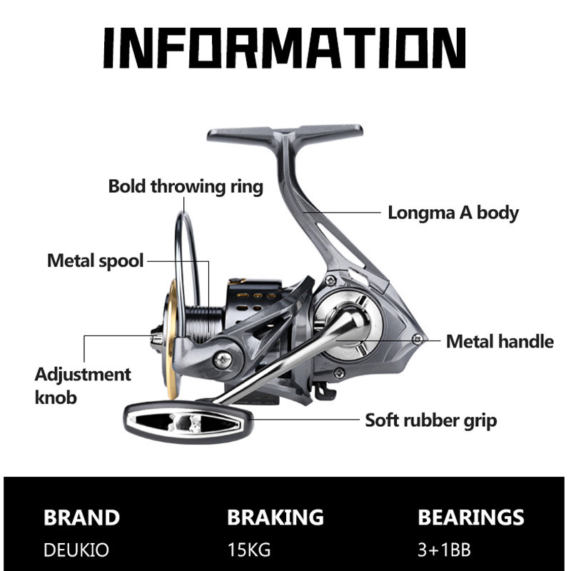 Coralov Deukio Reel Pancing DA2000-7000 Ril Pancing Kuat Full Metal Reel Pancing Spinning Power Handle Katrol Pancing 5.2:1 Max Drag 30KG Fishing Reel 13+1 BB