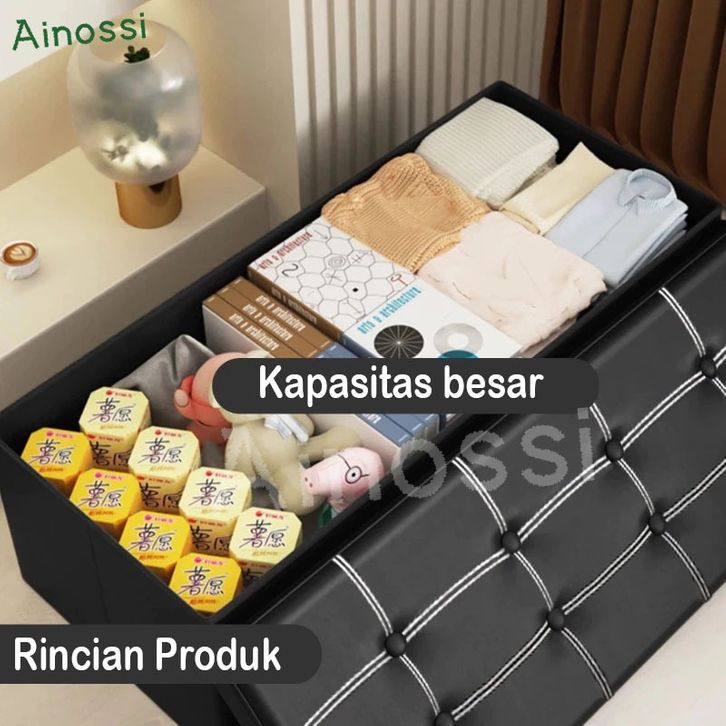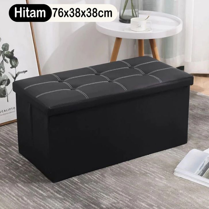 Kursi Penyimpanan Ottoman Lipat Sofa Bangku Kulit Organizer Kotak Tempat Duduk Sandaran Kaki