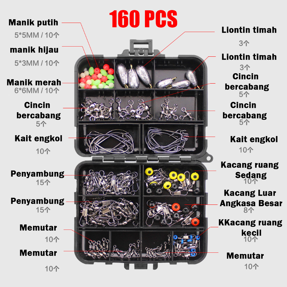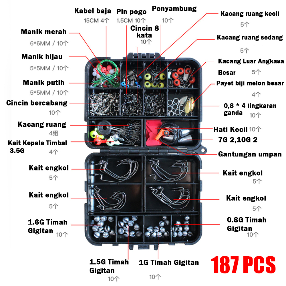 187 PCS Umpan Pancing Ikan Set / Fishing Bait Kit / Box Mancing / Aksesoris Pancing Kail Pelampung Pemberat