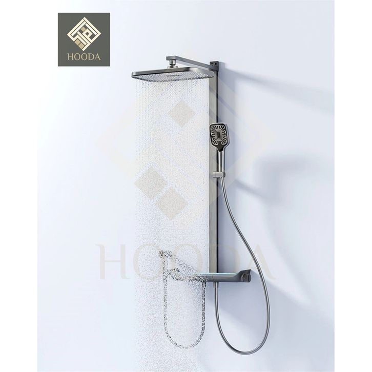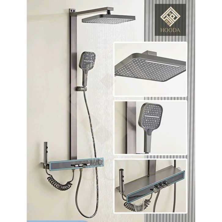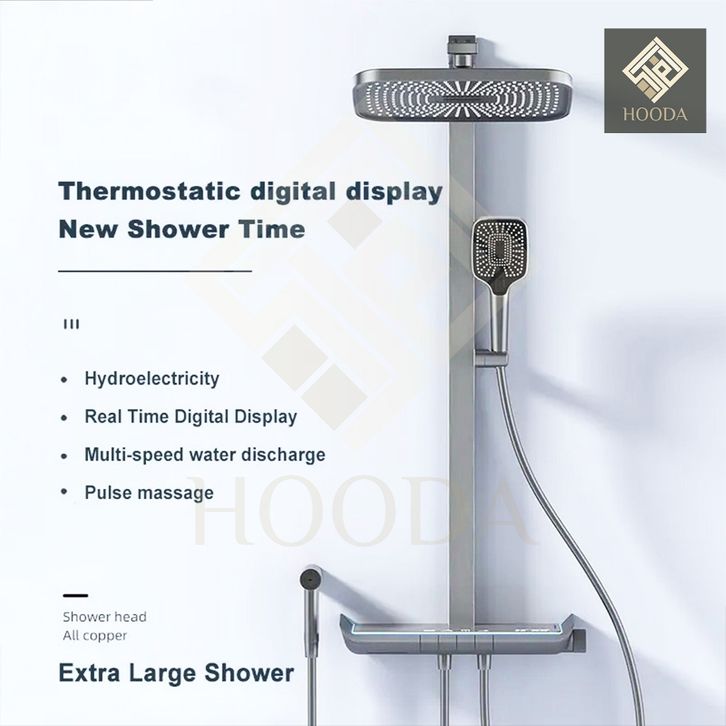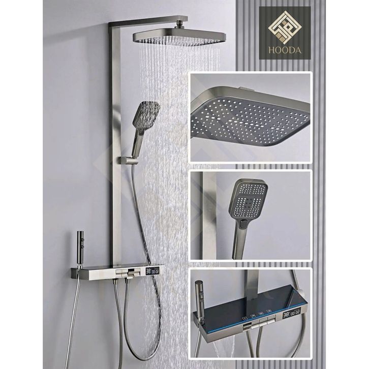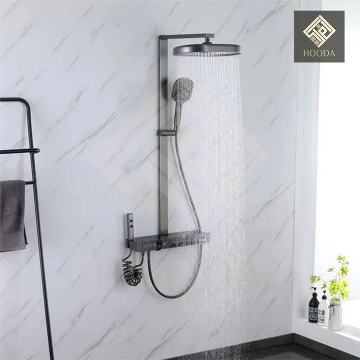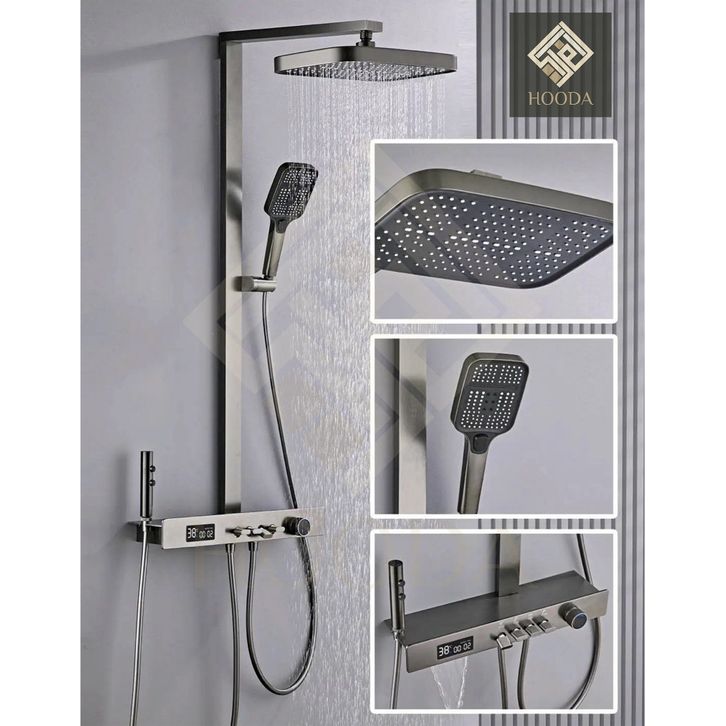 LED Digital Tiang Shower Column Thermostatic Panas Dingin Grey / Keran Air Shower Piano 4 in 1 Kuningan