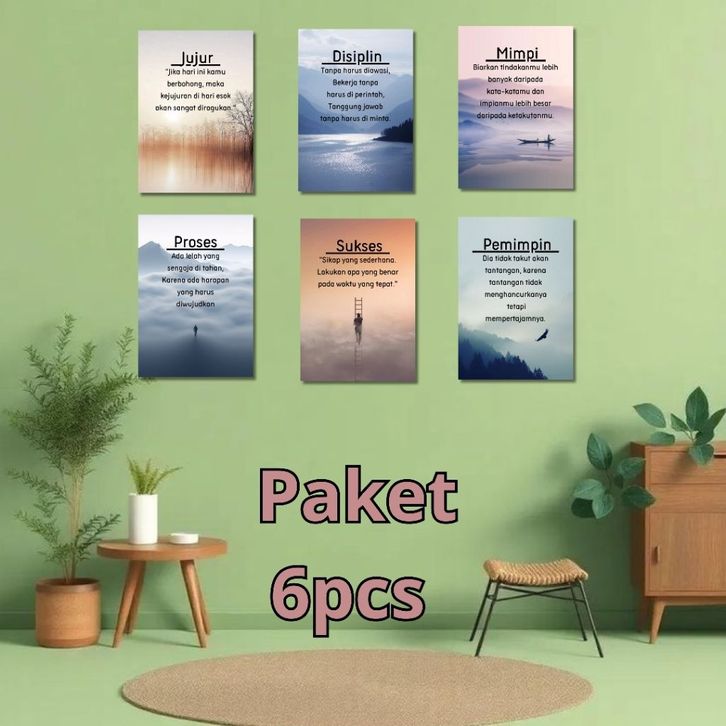 PREMIUM 1set (6pcs) poster kayu hiasan dinding aestetic ruangtamu kamar tidur kerja dekorasi kata kata motivasi