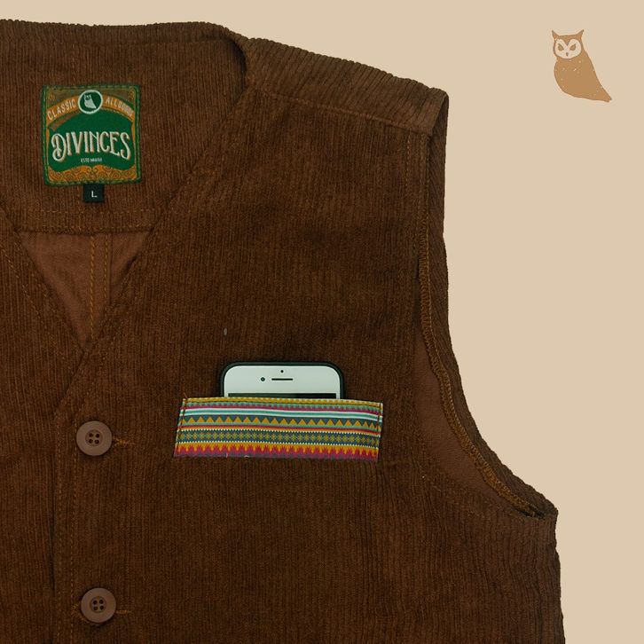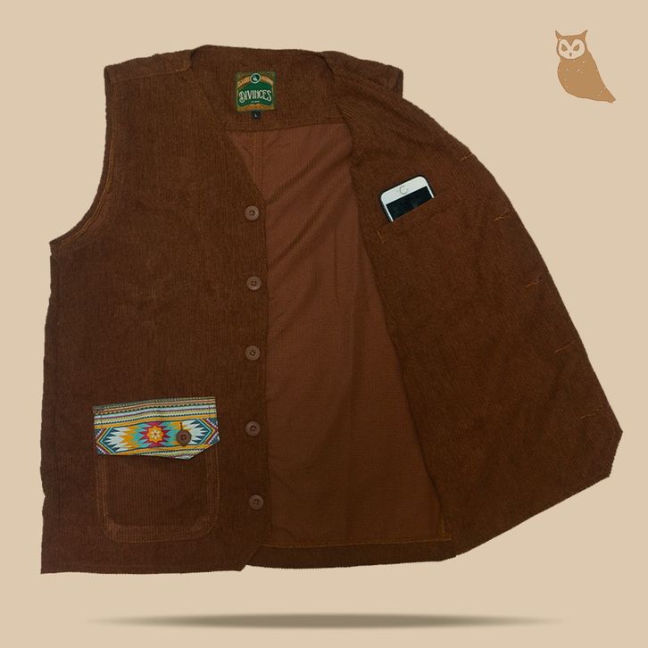 NEW DIVINCES Corduroy Vest Aztecthic Series - Rompi Vintage TwoTone Pria Wanita Unisex inehmn