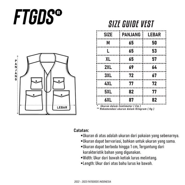 TERLAKU Fatgoods Vest Rompi jaket pria Cotton Twill creams inosg