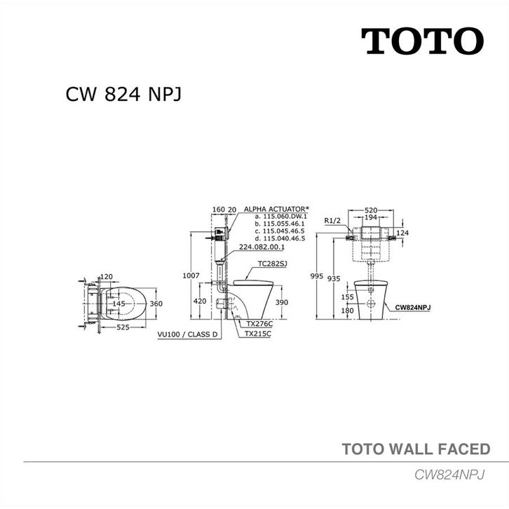 TOTO AVANTE WALL FACED CW824NPJ - TUTUP STANDART