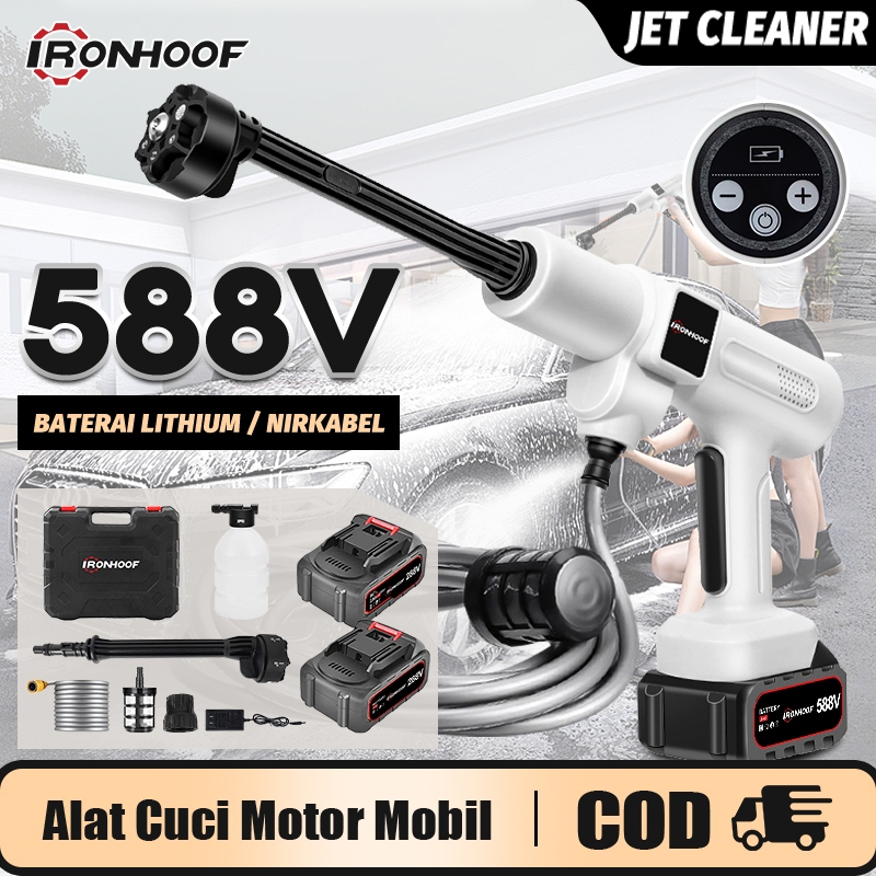 Jet Cleaner IRONHOOF 588V/288V Alat Cuci Mobil Tekanan Tinggi Alat Portable Nirkabel Untuk Nyuci