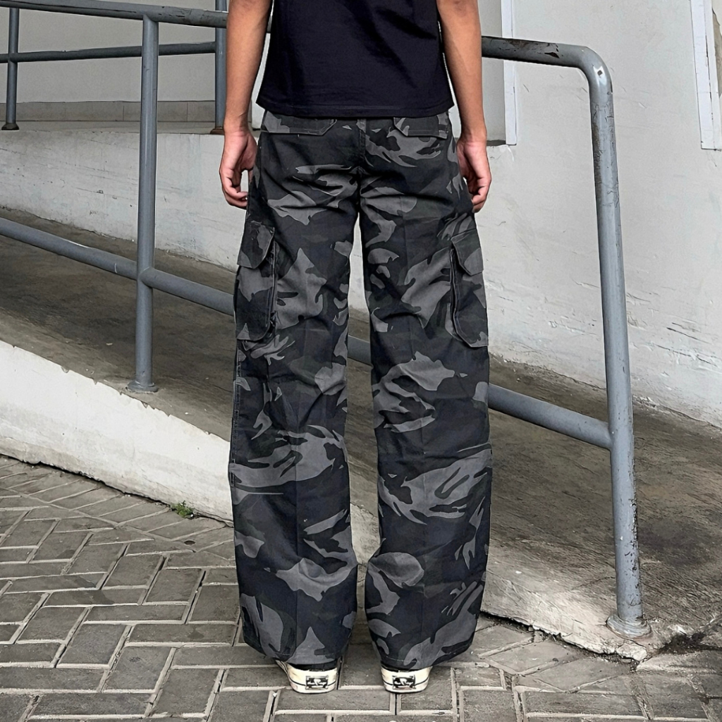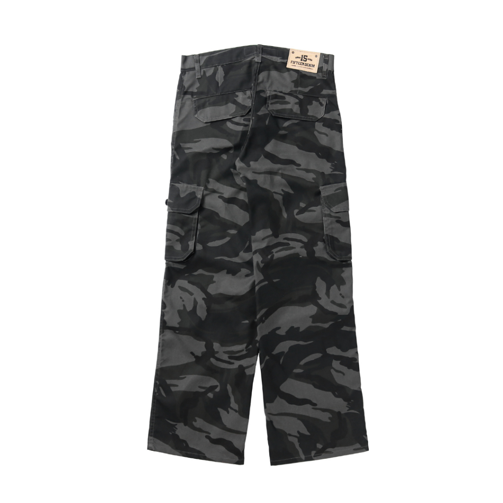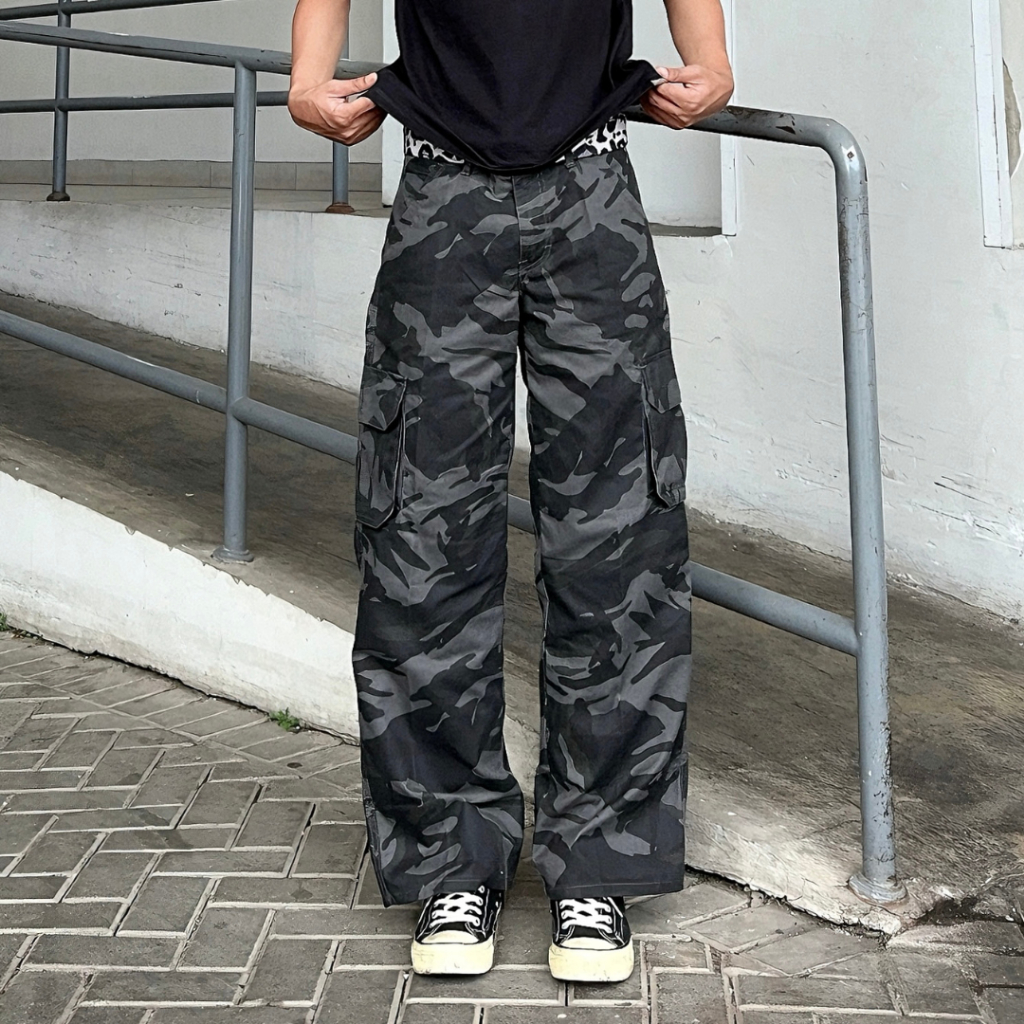 FIFTEEN DENIM - Celana Cargo Panjang Loose Camo Army Loreng Dark Grey Camo Cargo Pants Camo