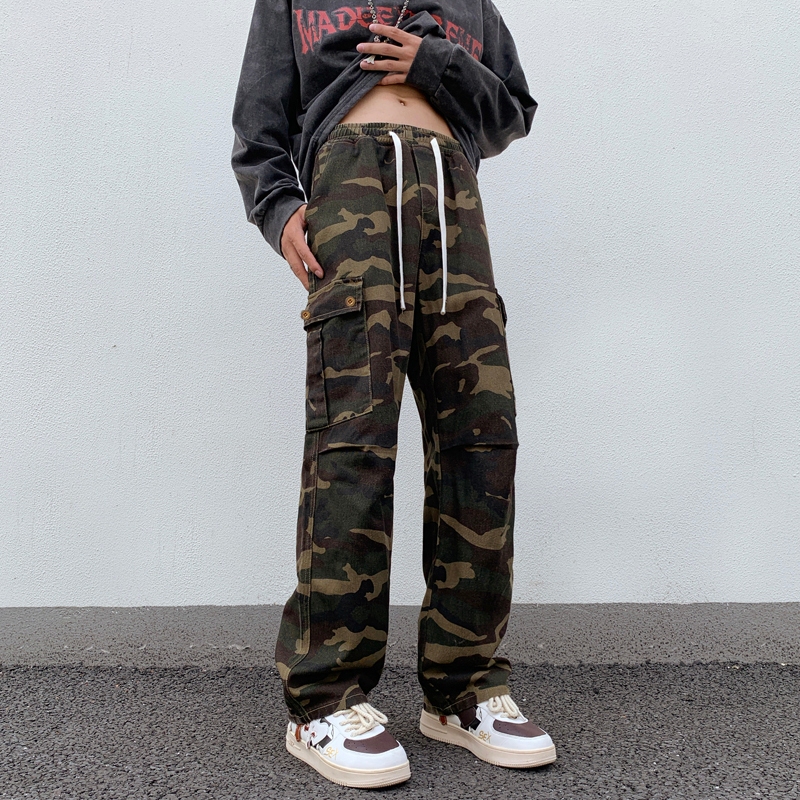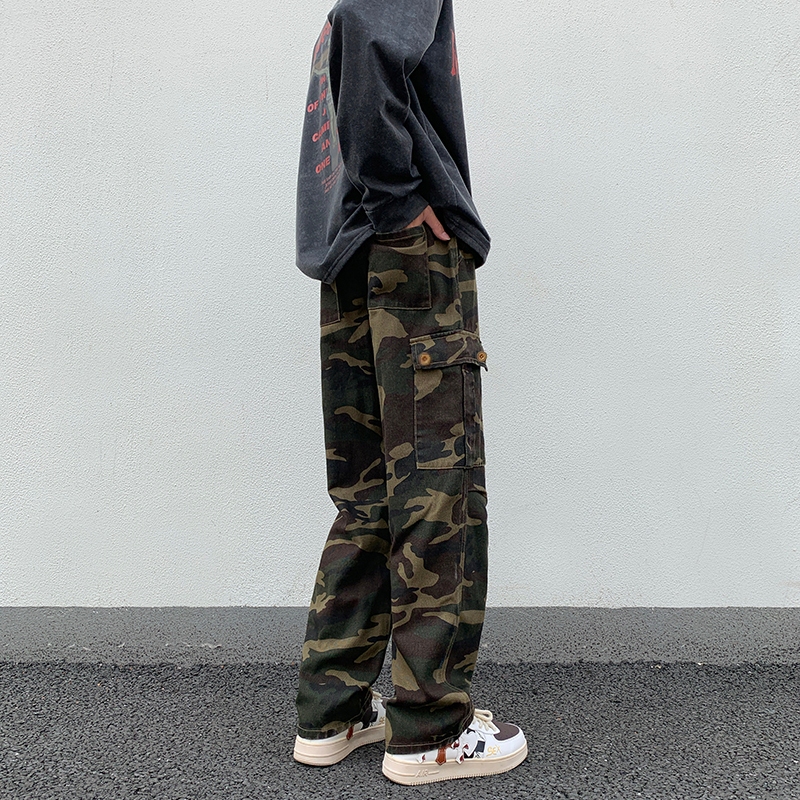 celana cargo gombrong hijau army oversize cowok cargo camo korean style cargo jeans celana outdoor denim celana banyak k