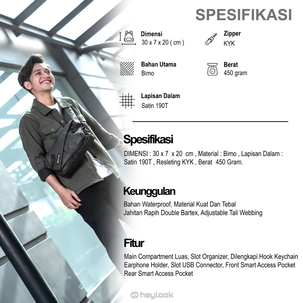 [Mall] HEYLOOK OFFICIAL - TAS SELEMPANG PRIA GAMMA SLING BAG COWOK WAIST BAG WATERPROOF ANTI AIR TAS KULIAH TAS KEJA LAKI LAKI SHOULDER BAG TAS MESSENGER BAG TERBARU