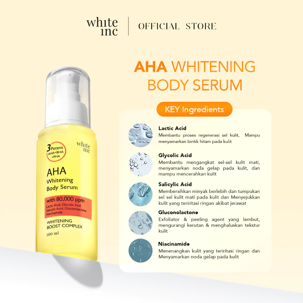 WHITE INC AHA Body Serum to Whitening & Moisturising | Hand Body Serum Mencerahkan Serta Merawat Skin Barrier Pada Kulit