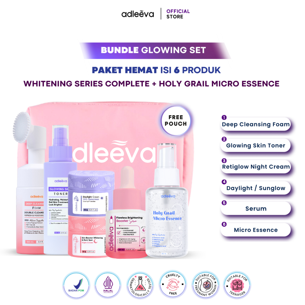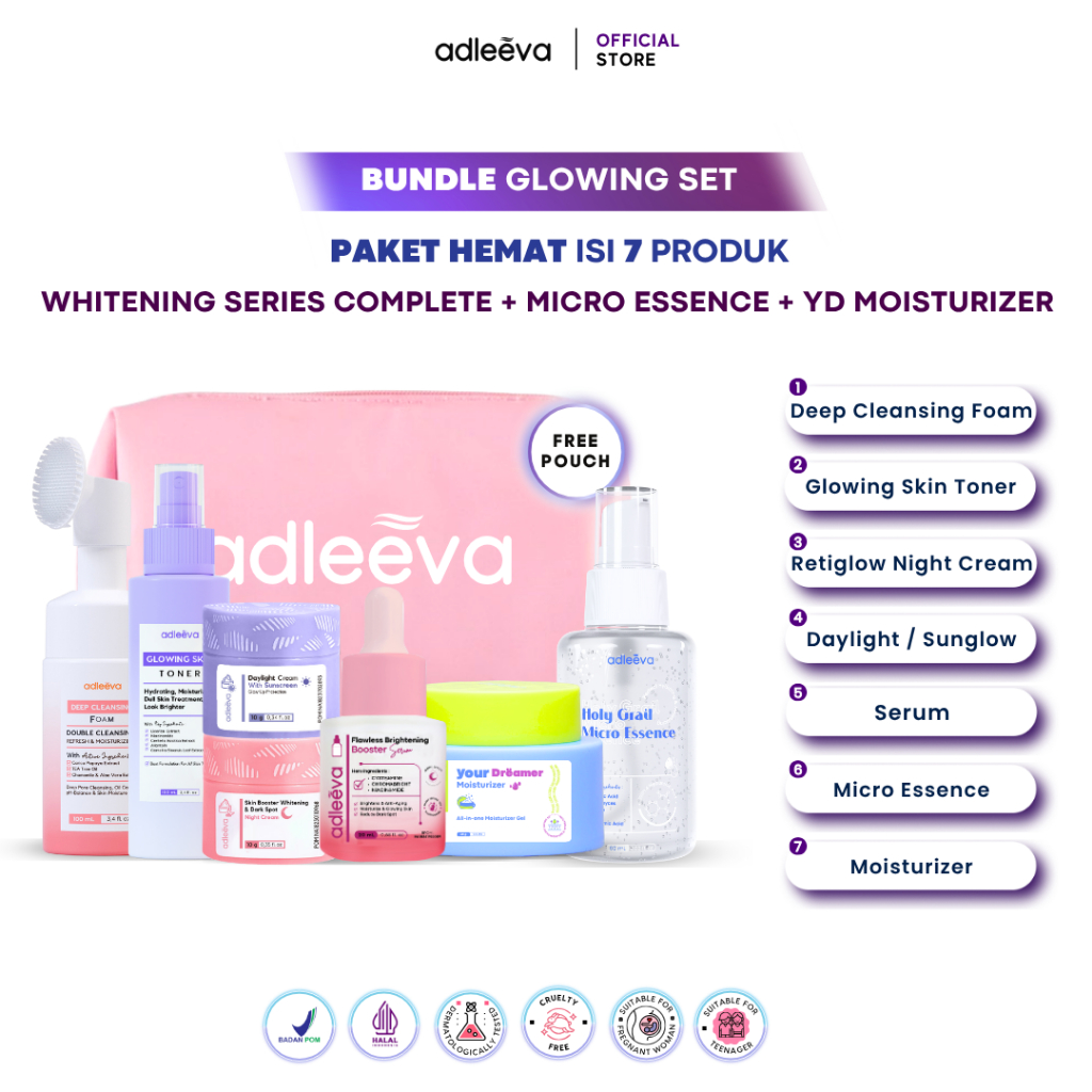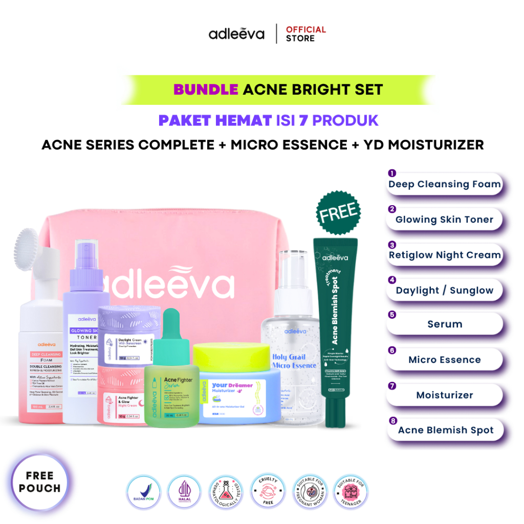 ADLEEVA Skincare Paket Hemat Acne Whitening Glowing Set Paket Complete + Moisturizer + Essence Produk ASLI BPOM