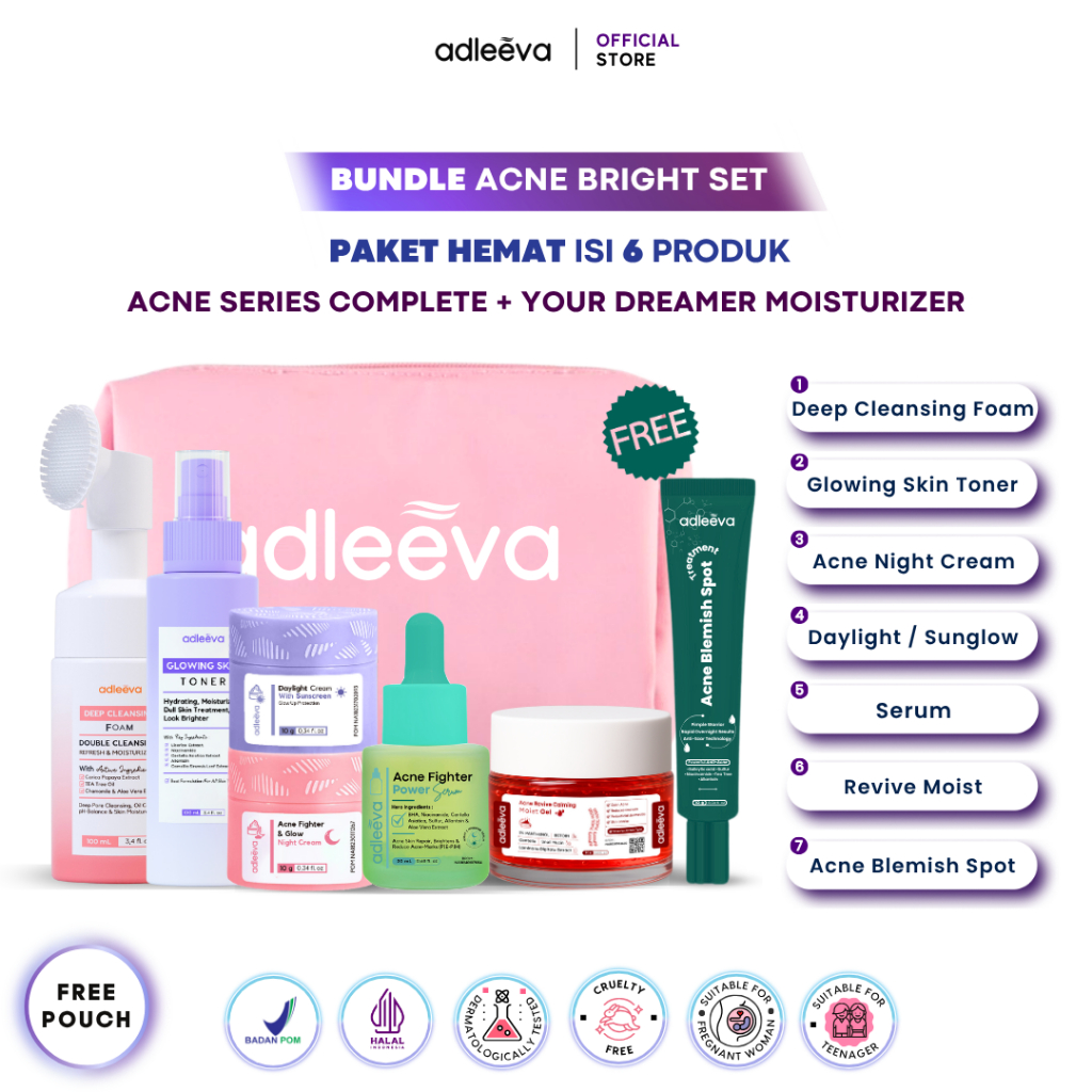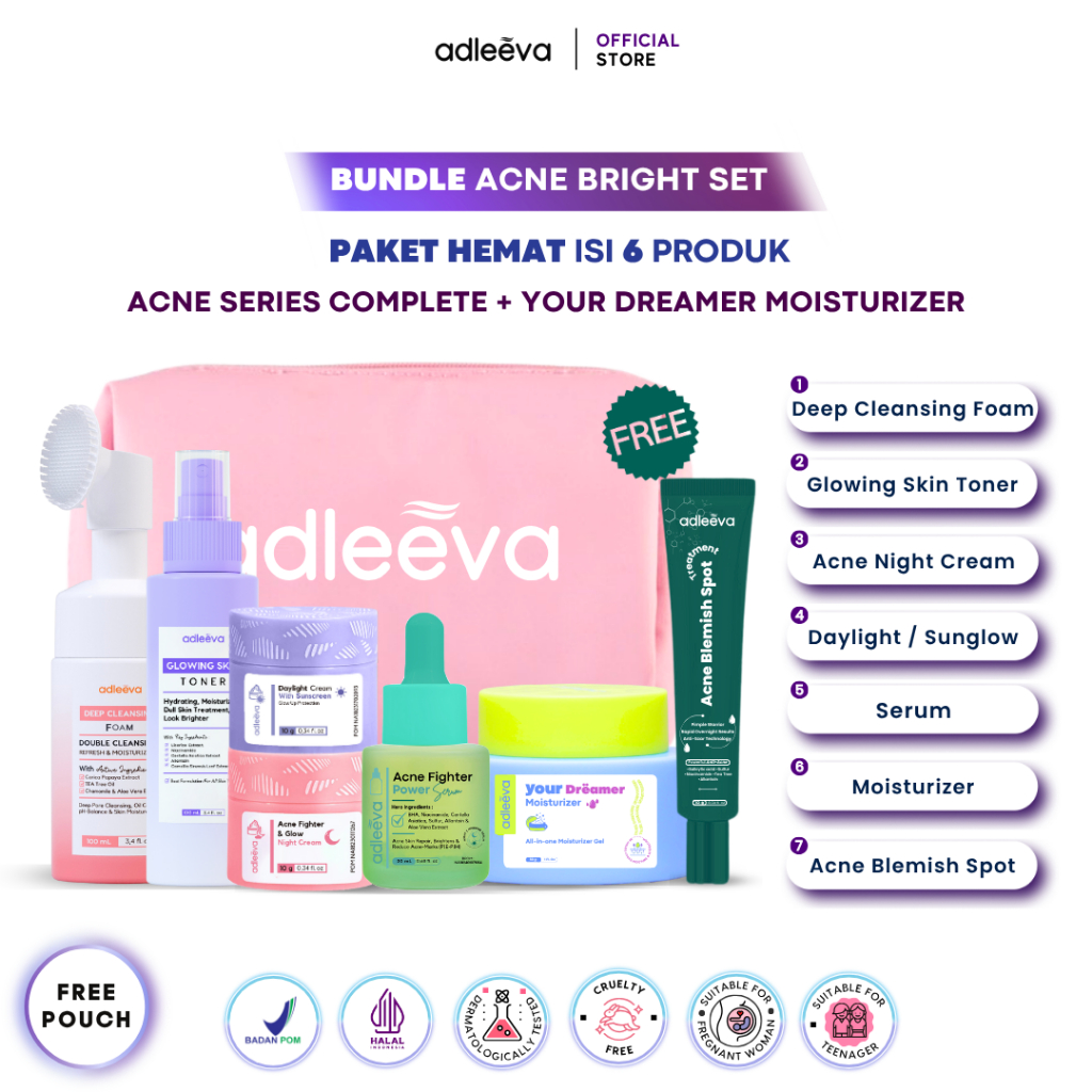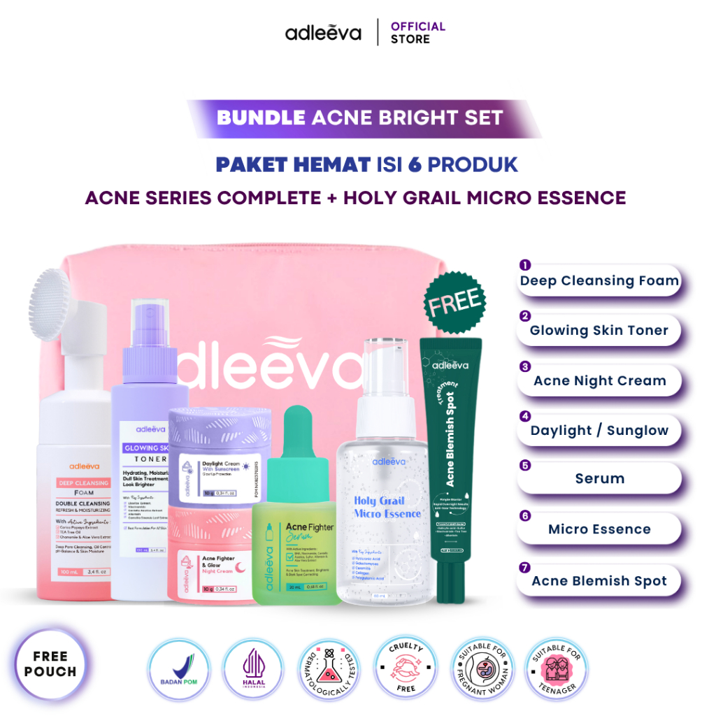 ADLEEVA Skincare Paket Hemat Acne Whitening Glowing Set Paket Complete + Moisturizer + Essence Produk ASLI BPOM