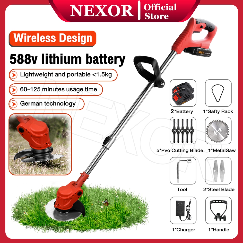 Nexor 588V Mesin Pemotong Rumpu Listrik Pemangkas Rumput dengan Cordless Lawn Mower Trimmer