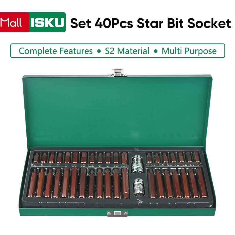 ISKU Star Hex Spline Bit Set 40pcs mata kunci sock L bintang Drill bit set
