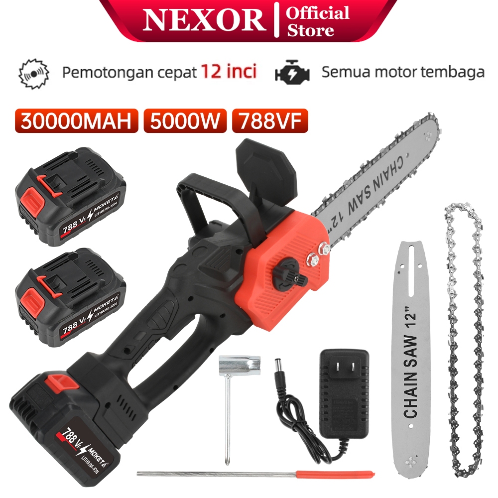 Nexor 5000W Chain saw 12 inch Gergaji Listrik Rantai 788VF Tanpa Kabel Mesin pemotong kayu alat