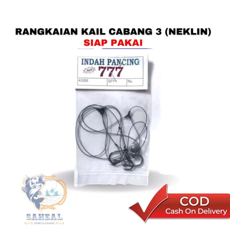Rangkaian Kail Pancing Glosor Ikan Bawal Cabang 3 (Neklin) Siap Pakai
