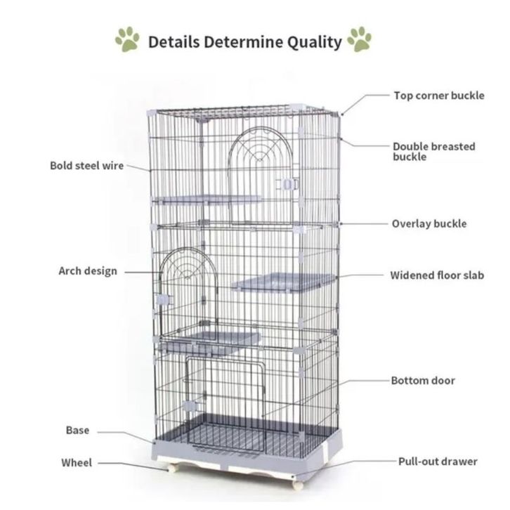 Kandang Kucing 3 Layer Size XL Laci Roda Coating Carbon Import