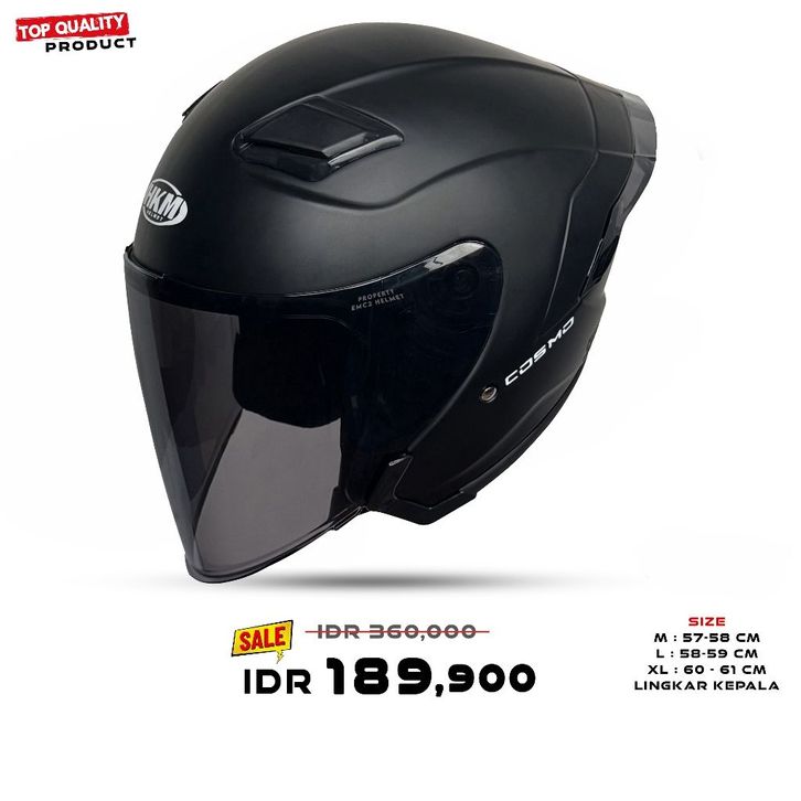 Helm Half Face MLA COSMO | Gorilla Grey Kaca Visor Hitam | Helm Premium Paket Ganteng