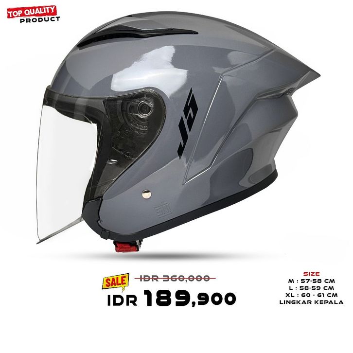 Helm MLA J5 | Grey Glosy Kaca Bening Half Face Premium Untuk Pria Dan Wanita Dewasa SNI