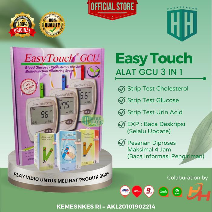 Alat Test GCU Cek 3 IN 1 , EASY TOUCH GCU 3 IN 1 Alat Cek Test Cholesterol, Gula Darah, dan Asam