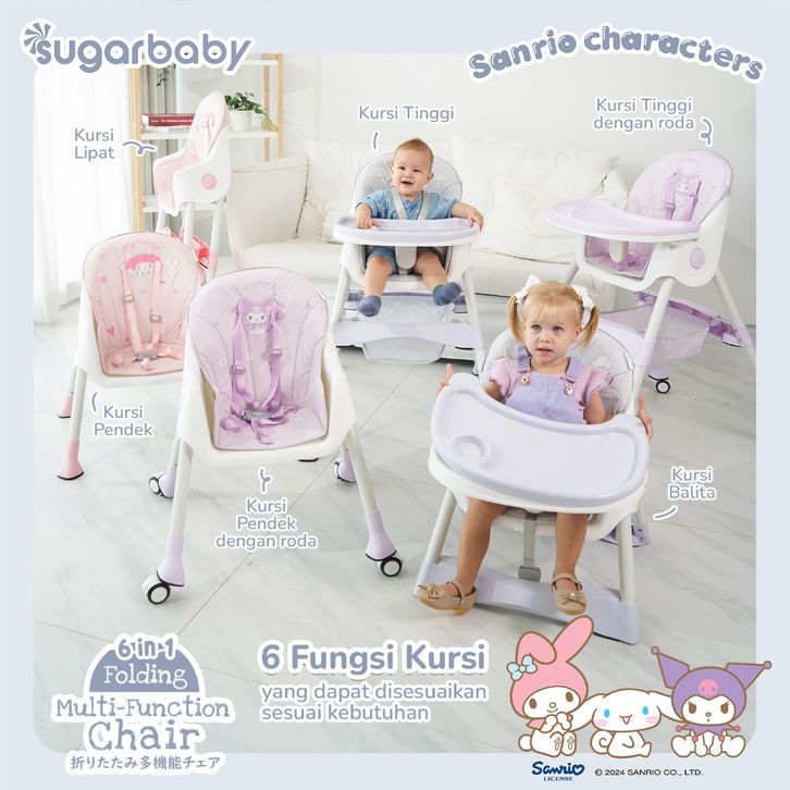 Sugar Baby 6-in-1 Folding Multi-Function Chair Sanrio Collection/Kursi Bayi/Kursi Anak/Kursi Makan Anak/Kursi MPASI/Bab