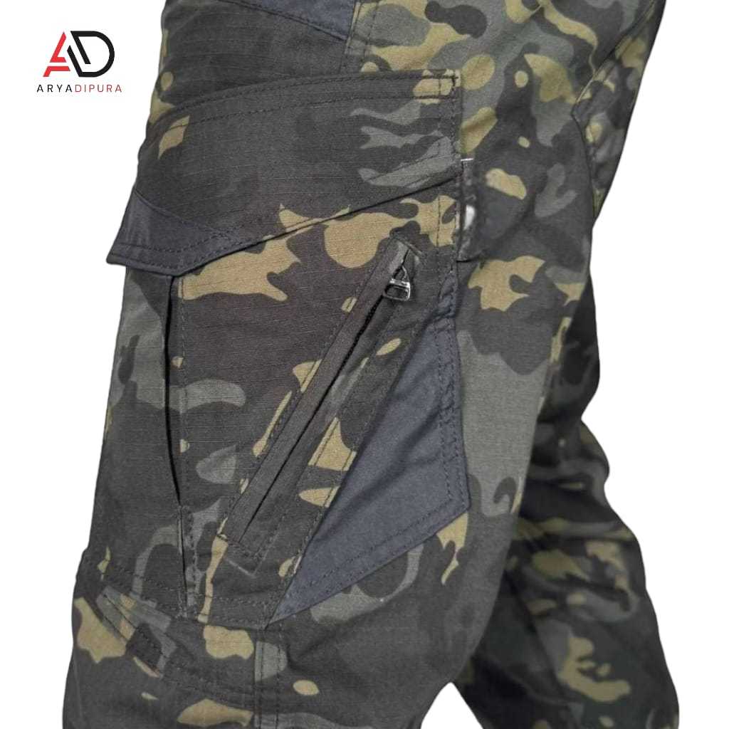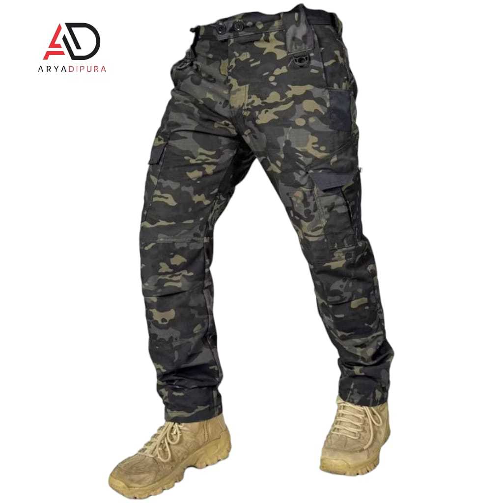 Aryadipura | Celana Tactical Loreng Motif Black Multicam Tebal | Celana Tactical Mtac Pria Wanita