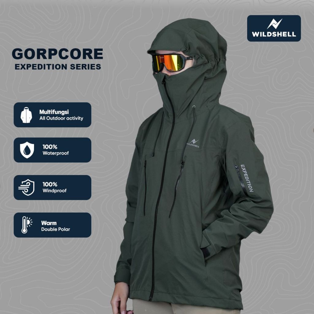 WILDSHELL - Jaket Gunung Gorpcore Expedition Series 100% Waterproof