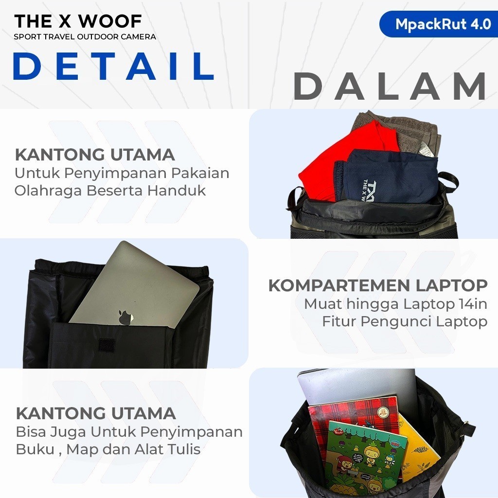 The X Woof MpackRut4 Tas Serut Laptop Tas Serut Olahraga Tas Laptop Tas Bola Tas Basket Tas Badminton Tas Tenis Tas Ping