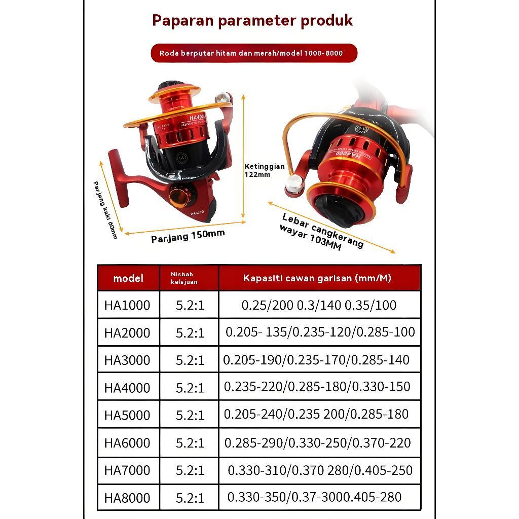 DAIWA HA1000-7000 Reel Pancing Tarikan Reel Spinning Gear 5.2: 1 Gagang Spul Logam 13BB Rill Gulung