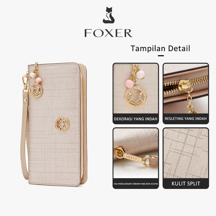 TERBARU FOXER Dompet Panjang Dompet Kulit Ritsleting Tempat Kartu Kredit Desain Sederhana Dompet esokf