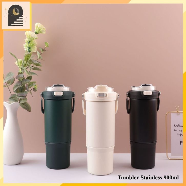 tumbler stainless botol tahan dingin panas Either.Id - Tumbler Stainless 900ml Botol Minum Tahan Panas / Dingin Portabl