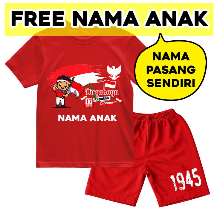 PROMO [GRATIS NAMA] Setelan Baju Anak 17 Agustus Kemerdekaan Indonesia PE ohers
