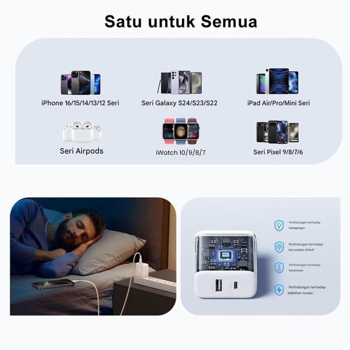 UGREEN Adaptor Kepala Charger 20W GaN Dual Port Type C + USB 18W PD Fast Charging