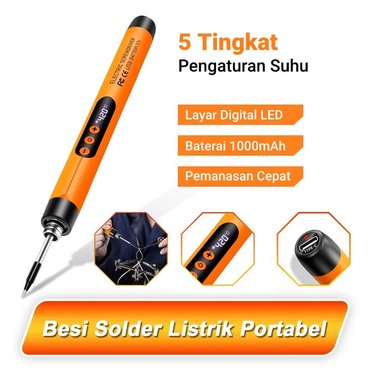 Clivo Besi solder nirkabel portabel dengan inti pemanas yang dapat diganti dan indikator keselamatan LED BY ORIGINAL PR