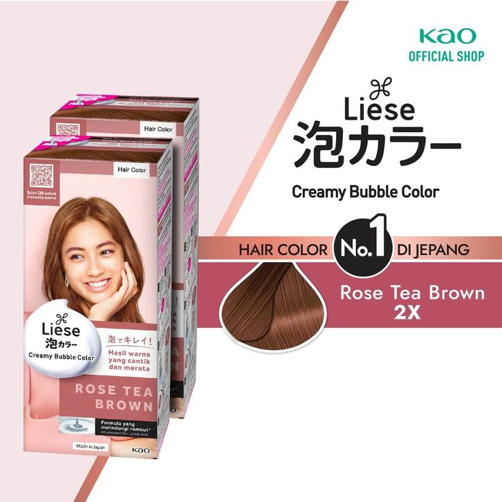 Liese Creamy Bubble Color Foam Cat Pewarna Rambut Rose Tea Brown Twinpack