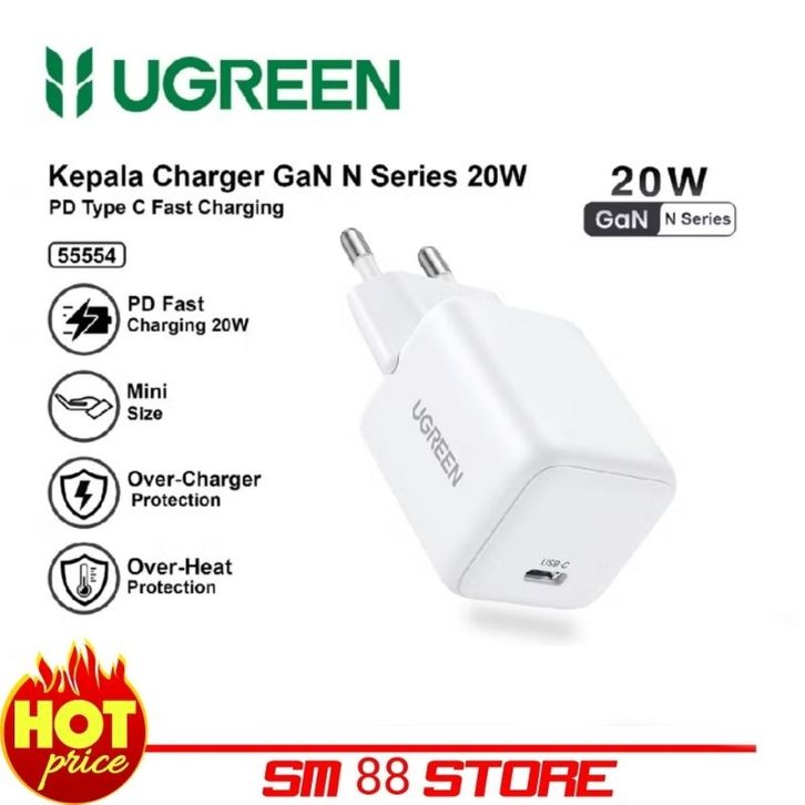 UGREEN ADAPTOR 20W GAN TYPE-C PD FAST CHARGING KEPALA CHARGER IPHONE DLL GARANSI RESMI