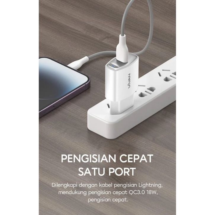 Charger Vivan iPhone Lightning 3A 18W Power Oval 3L Fast Charging White