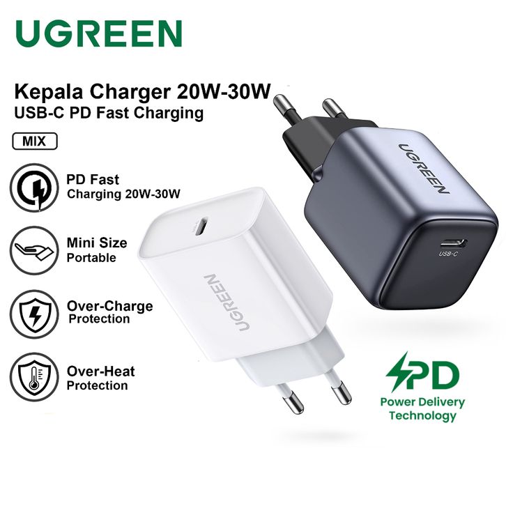 UGREEN Adaptor Kepala Charger iPhone 15 14 13 12 11 Type C PD Fast Charging 20W 30W