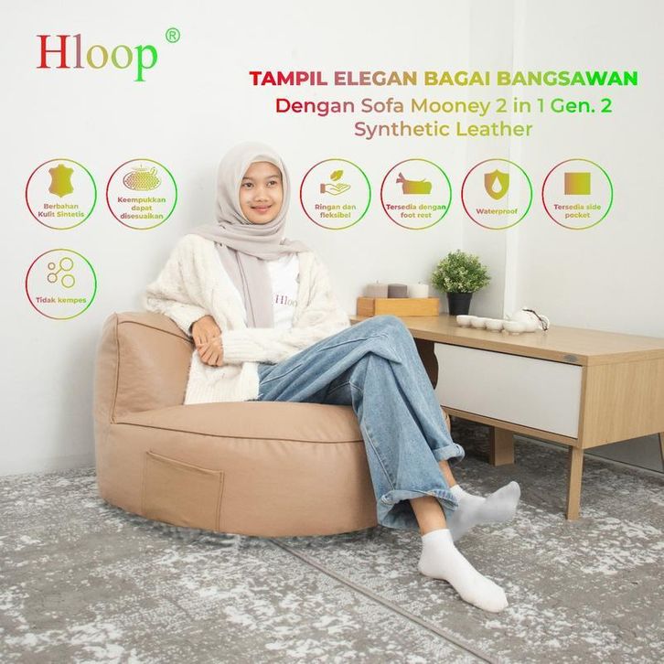 TERLARIS HLOOP MOONEY SOFA MALAS 2IN1BEAN BAG SOFA DENGAN BANTALAN KAKI RUANG TAMU SOFA\SOFA KECIL UNTUK KAMAR AESTHETIC