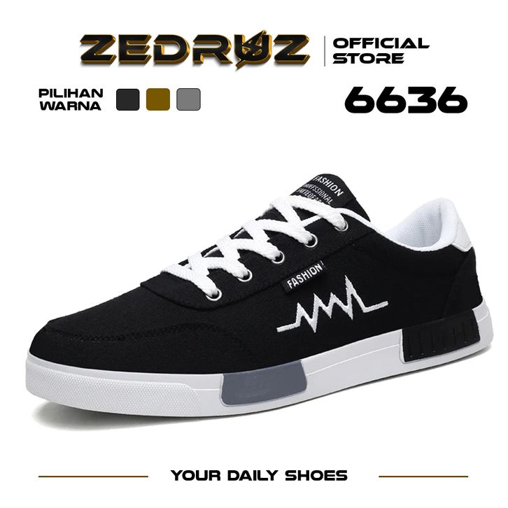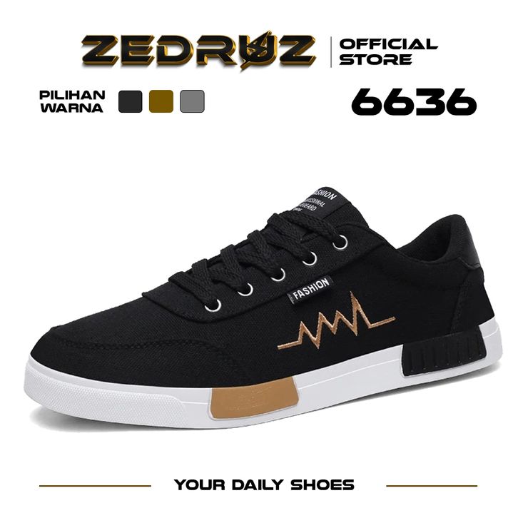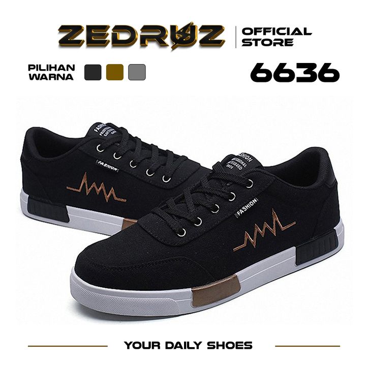 Zedruz Sepatu Sneakers Tali Pria Casual Krem Sekolah Kerja Sport Shoes Kekinian Muda Black 6636 BY ORIGINAL PRODUCT