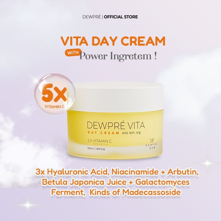 Dewpré Vita Day Cream 50ml | Moisturizer Made In Korea Mencerahkan Wajah, Menghilangkan Bekas Jerawat, Melembabkan dan