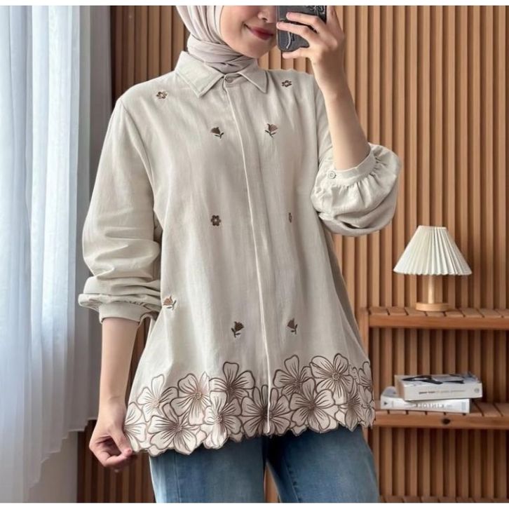 Atasan Blouse Wanita Bordir STEVY LINEN RAMI