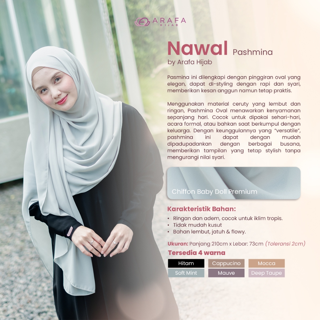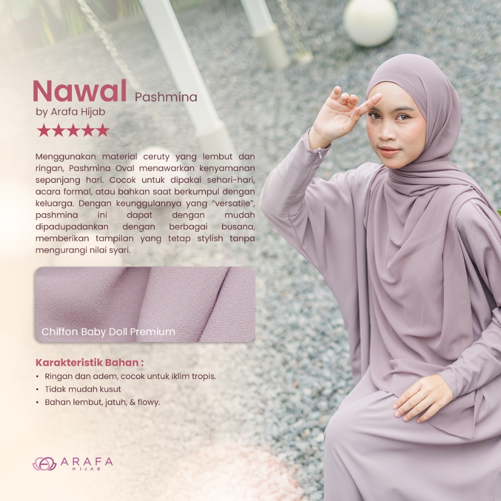 Arafa Hijab – Nawal Pashmina | Pashmina Oval Syari Harian | Bahan Chiffon Premium
