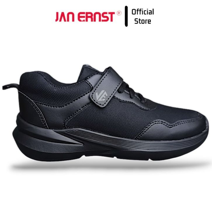 Sepatu Sekolah Anak JAN ERNST Tali Velcro Full Hitam Size 31-35 Sepatu Anak Sekolah Laki-Laki Perempuan TK SD