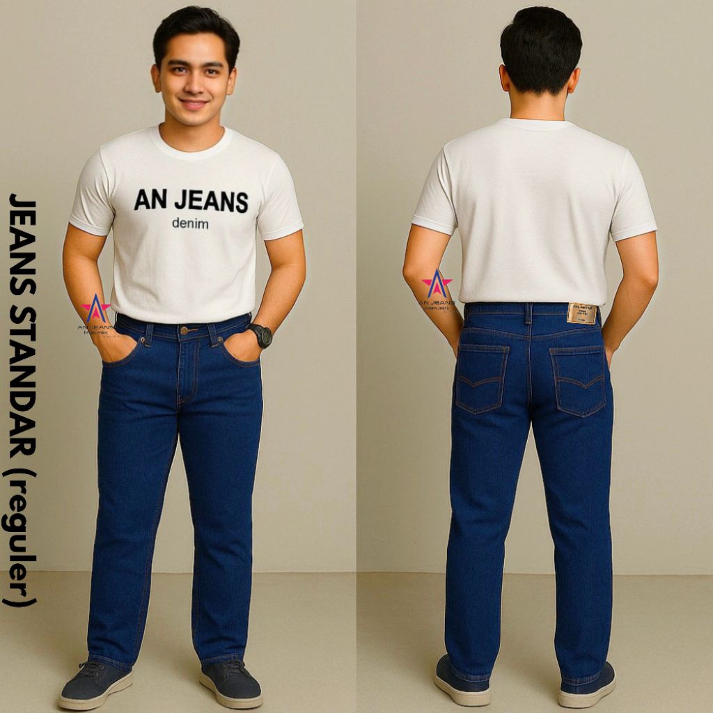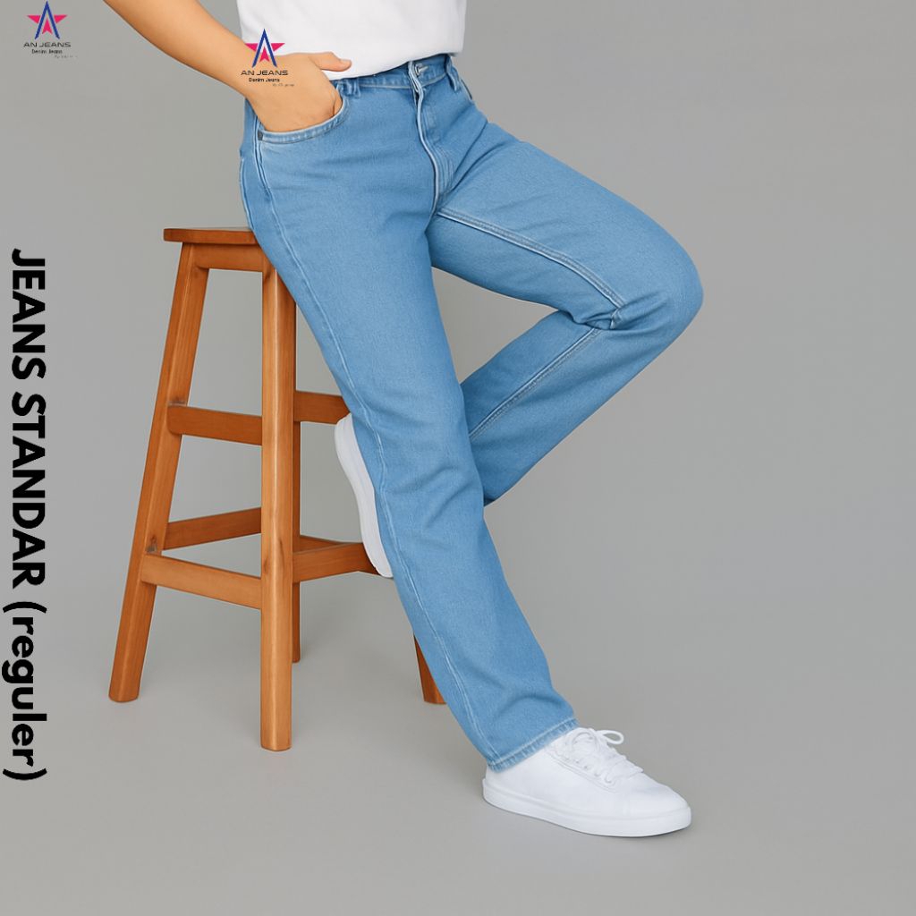 AN JEANS - Celana Jeans Reguler Pants Retro Basic Denim Celana Standar