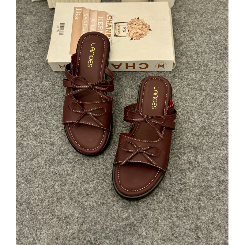 LANOES Sandal Wanita Platform Terbaru Sendal wanita Selop Pita Tali Empuk Viral Kekinian 2025