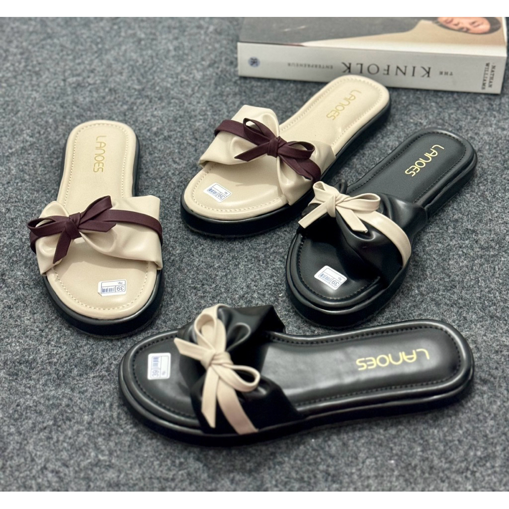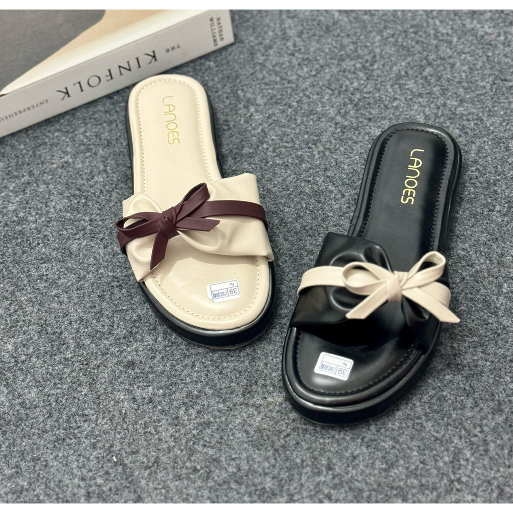 LANOES Sandal Wanita Platform Terbaru Sandal Motif Pita Empuk Full Busa