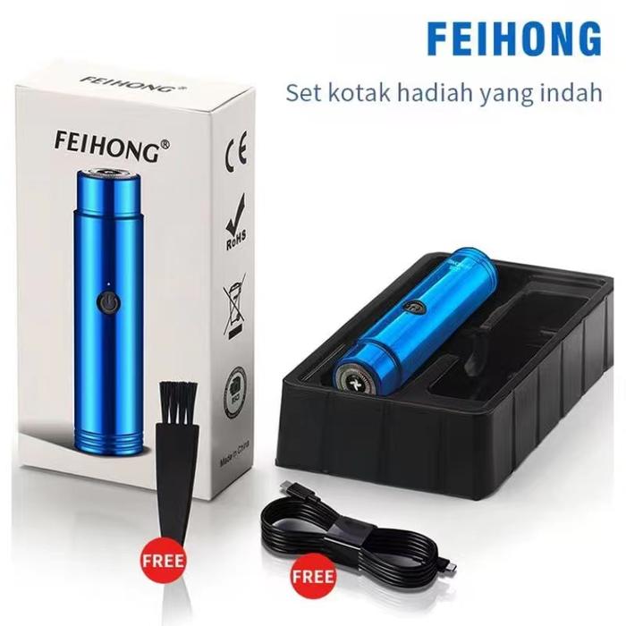 MEGA SALE - ALAT CUKUR ELEKTRIK MINI FEIHONG PORTABLE USB BIRU KUMIS - FEIHONG, HITAM BEST